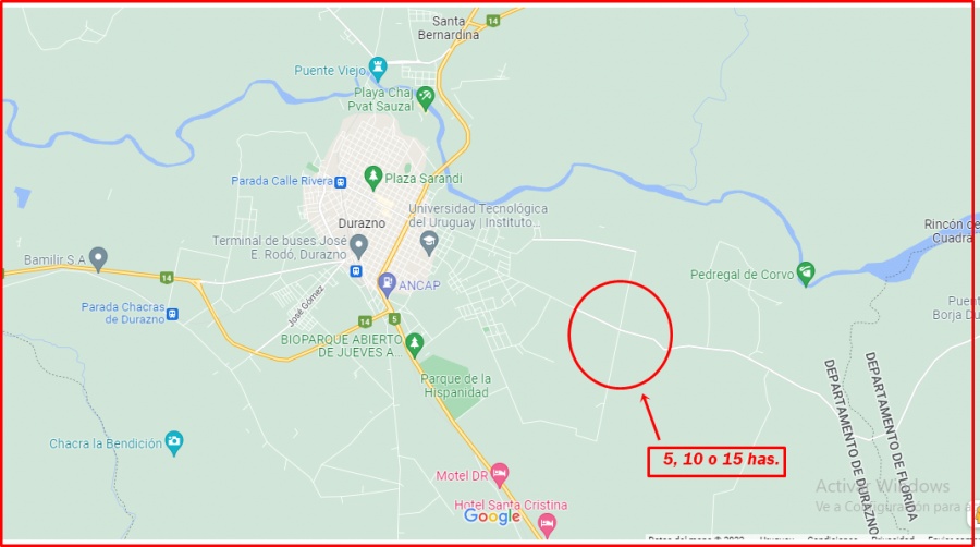 Inmobiliaria vende chacra sin poblaciones en camino San Borja, sobre camino principal, servicios en la puerta, son 3 fracciones de 5 has, se venden juntas o separadas, en total son 15 has valor 300.000 Dólares o 100.000 Dólares por unidad más comisión Inmobiliaria.