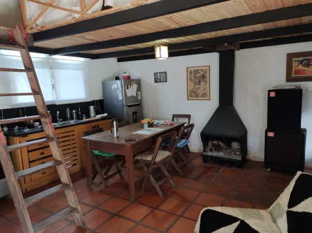 Consta de: living-comedor con estufa a leña y cocina integrada, amplios ventanales, buena iluminación, baño, dormitorio y entrepiso de madera que hace las veces de segundo dormitorio.
